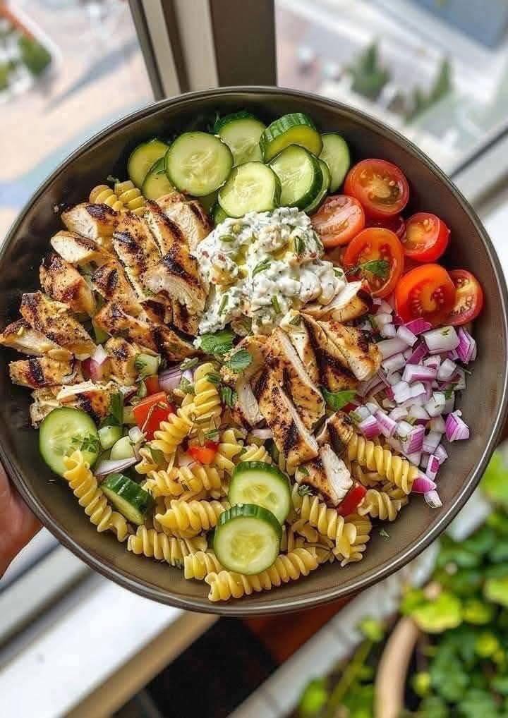 Creamy, tangy, herby, and protein-packed—this Greek Chicken Tzatziki Pasta Salad brings together everything you love about Mediterranean flavors in one easy, meal-prep-friendly dish. With grilled herb-seasoned chicken, crunchy cucumbers, bright red onions, and a smooth, garlicky tzatziki dressing, this pasta salad is anything but boring.
