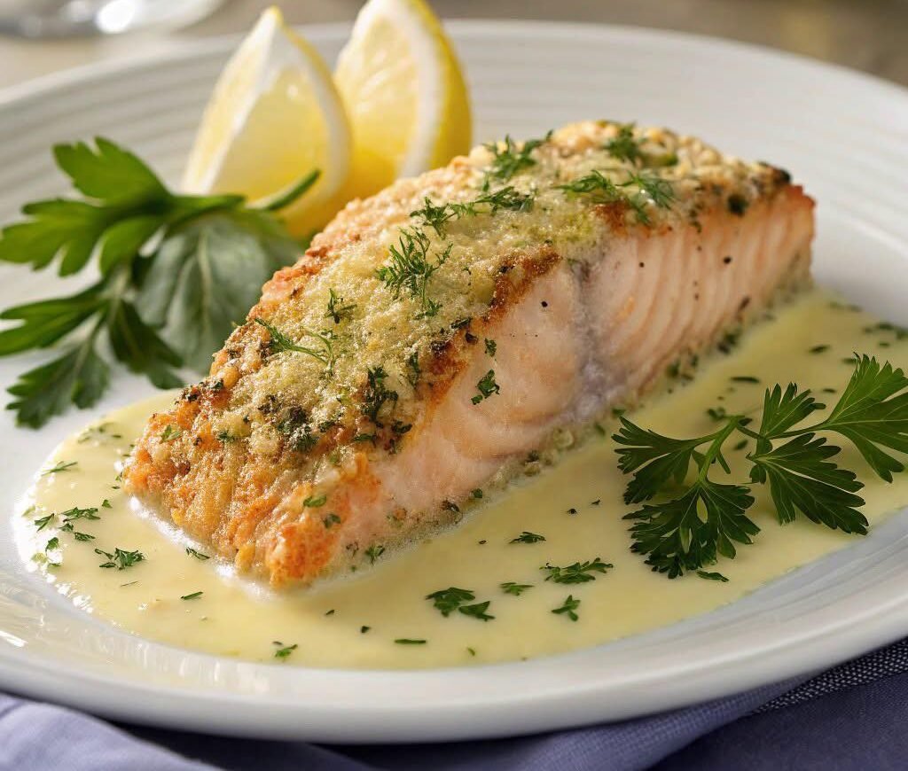 Parmesan Herb-Crusted Salmon with Lemon Butter Sauce