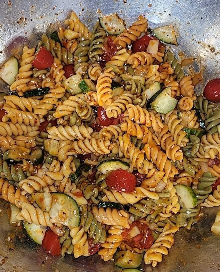 - If the salad looks a bit dry, add more Zesty Italian dressing (from the remaining 1/4 bottle or a fresh bottle) until it reaches your desired moistness.