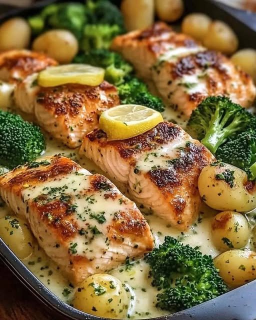 Lemon Butter Salmon with Crispy Potatoes and Broccoli 🍋🐟🥦