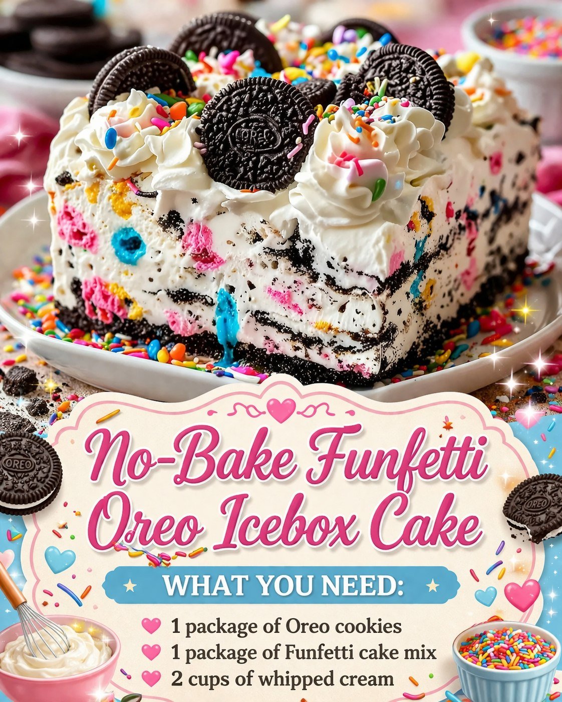 No-Bake Funfetti Oreo Icebox Cake – Colorful, Creamy & So Easy