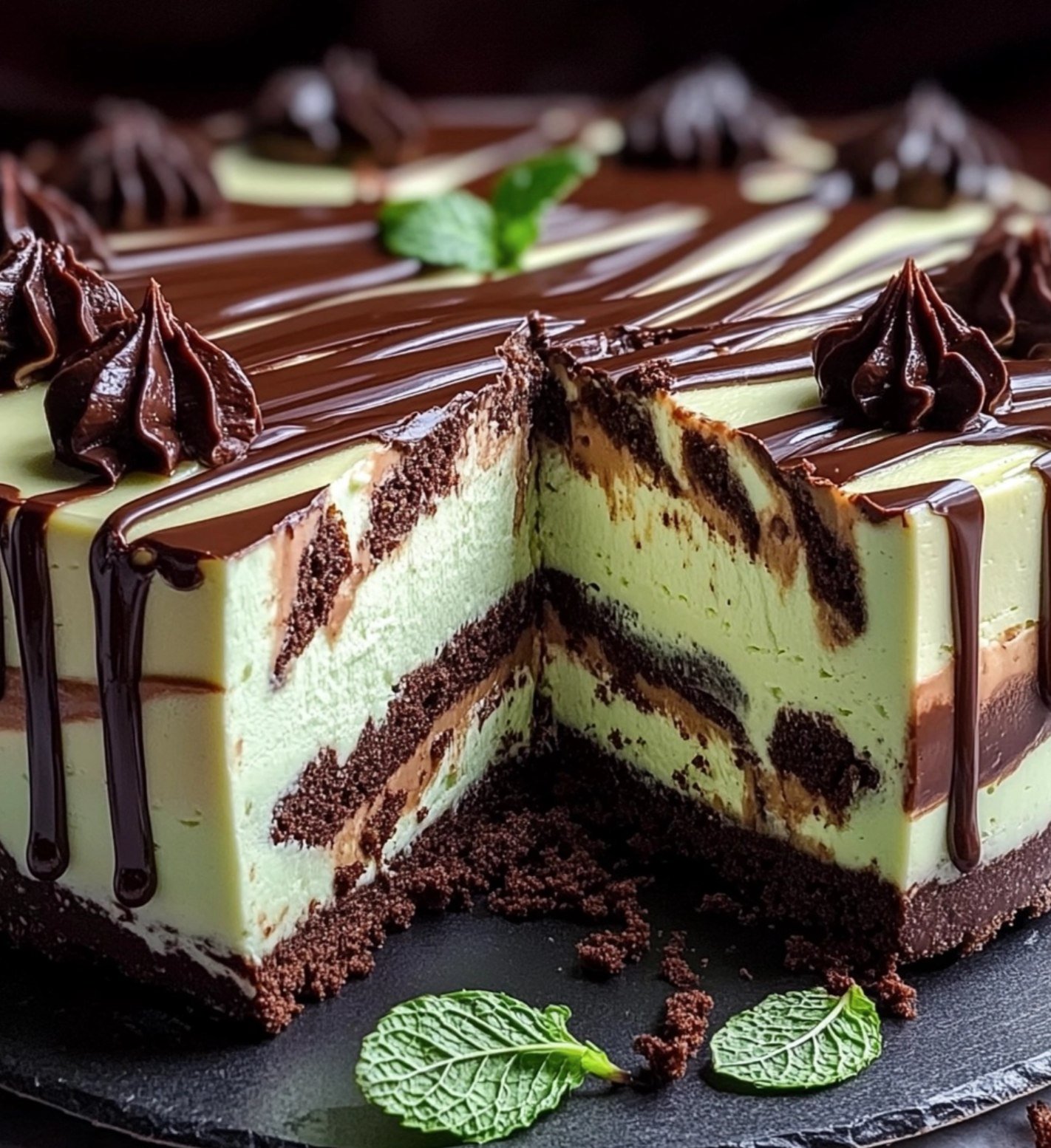 This recipe hits the trifecta of perfect dessert qualities: texture, flavor, and visual appeal. The base is a crunchy, buttery Mint Oreo crust that provides a deep cocoa anchor. The filling is where the magic happens. By using a “zebra” pouring technique, you get alternating layers of rich dark chocolate and refreshing mint cream cheese. It’s light, airy, and incredibly smooth thanks to the gelatin, which gives it that professional “set” without the heavy, dense feeling of a baked cheesecake.