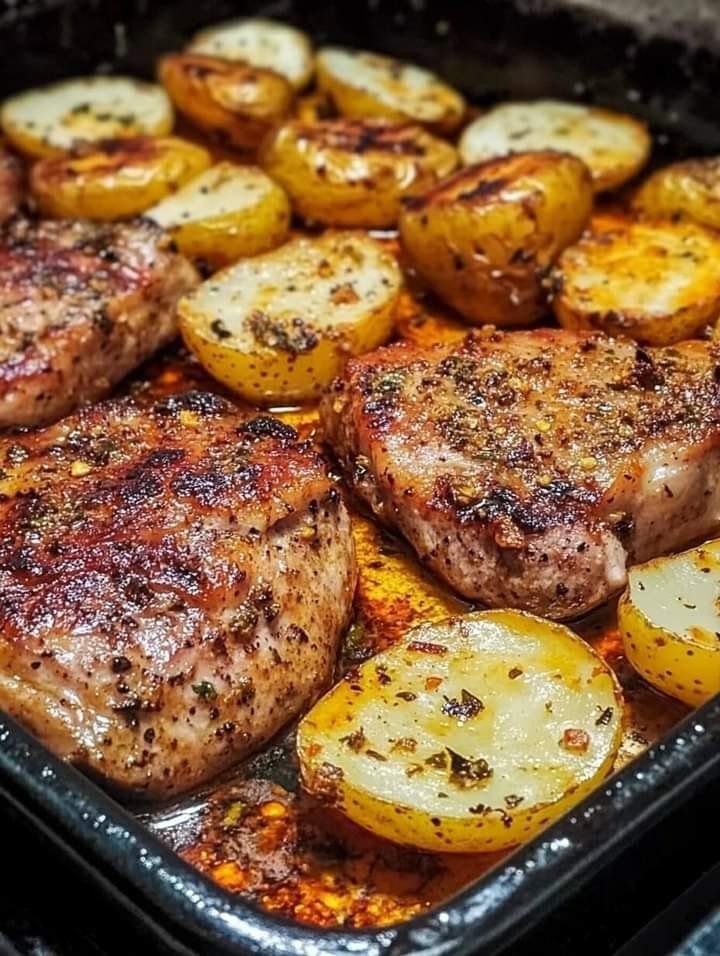 - Garnish and Serve: Carefully remove the pan from the oven. Garnish with fresh, chopped parsley if desired. Serve immediately and enjoy how those potatoes absorbed all that wonderful pork flavor!
