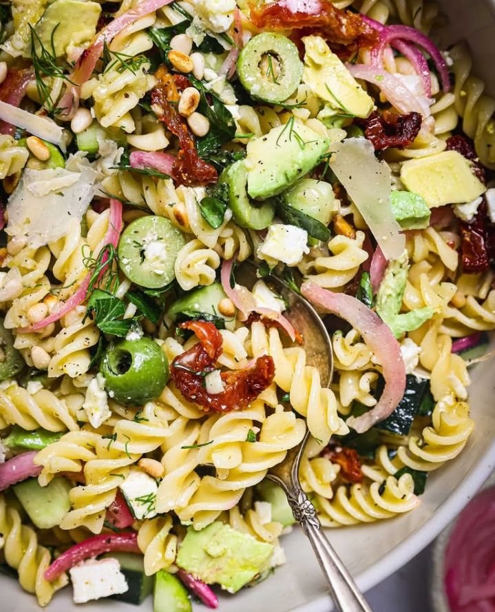 Another reason this recipe stands out is that it is flexible. You can swap the pasta shape, switch up the herbs, or lean into the veggies you love most and still end up with a delicious bowl of pasta salad.