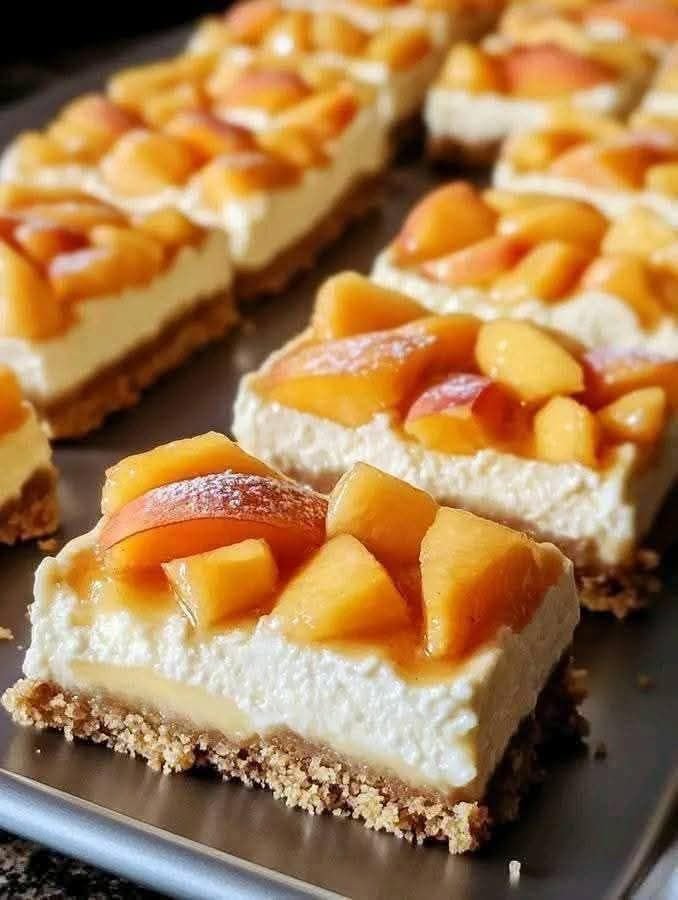 If summer had a signature dessert, this would be it. These Peaches and Cream Cheesecake Bars combine a buttery graham cracker crust, silky smooth cheesecake filling, and sweet cinnamon-kissed peaches baked right on top.