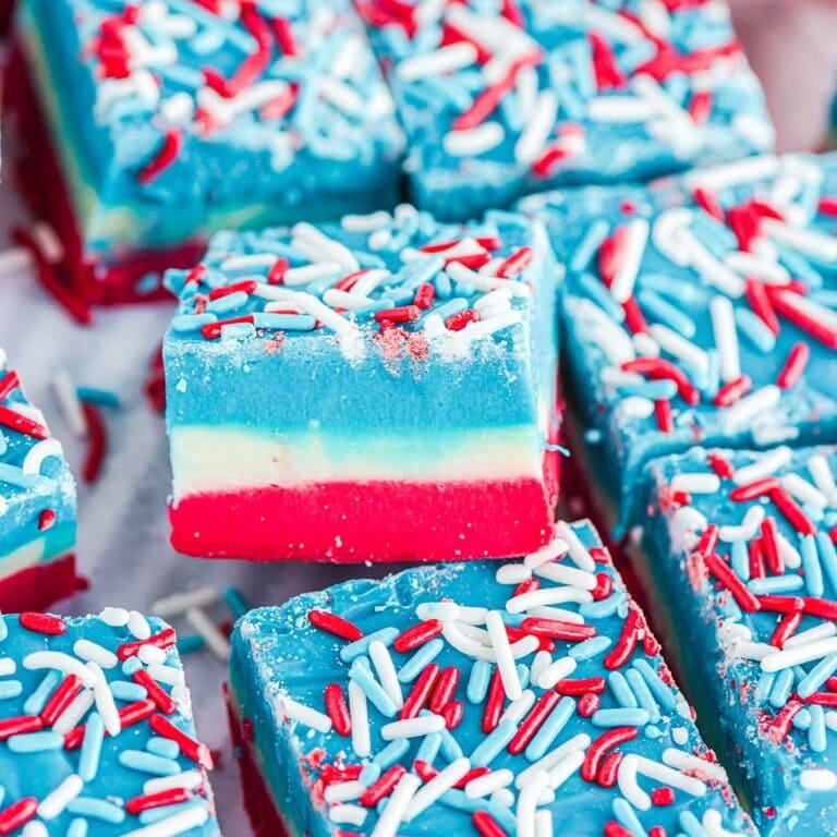 It’s rich, creamy, and full of vanilla flavor—kind of like a sweet white chocolate base meets classic fudge. But what really makes it shine are the vibrant layers of red, white, and blue, swirled just enough to look like a celebration in every bite. It’s no-bake, super simple, and always a hit with both kids and adults.