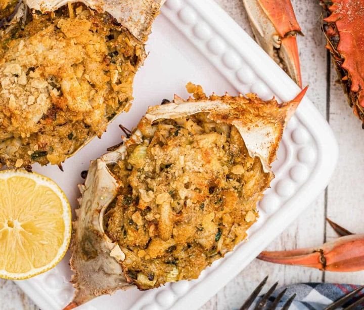 Stuffed crabs pair beautifully with rice, roasted vegetables, green beans, a simple salad, or other seafood-friendly sides. They also fit nicely into a Southern-style menu with hearty mains and comforting side dishes.