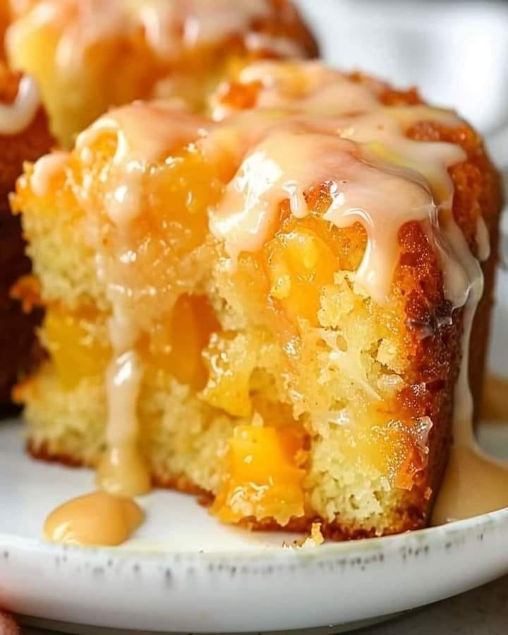 - Drizzle & Serve: Once the cake has cooled completely, drizzle the peach glaze generously over the top, allowing it to drip down the sides. Allow the glaze to set slightly (about 15-30 minutes) before slicing and serving.