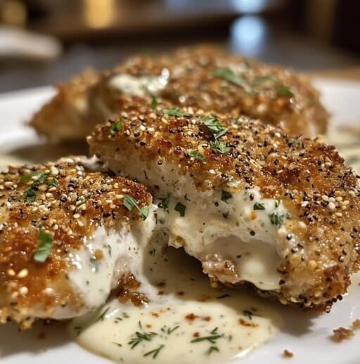 This dish combines bold textures with a satisfying richness. The pork chops get that golden, nutty crunch from the seasoning blend — sesame, onion, garlic, and poppy seed — while the cream cheese sauce brings in freshness with dill and just enough silky smoothness to make every bite addictive. It’s creative, comforting, and makes a surprisingly easy weeknight dinner feel gourmet.