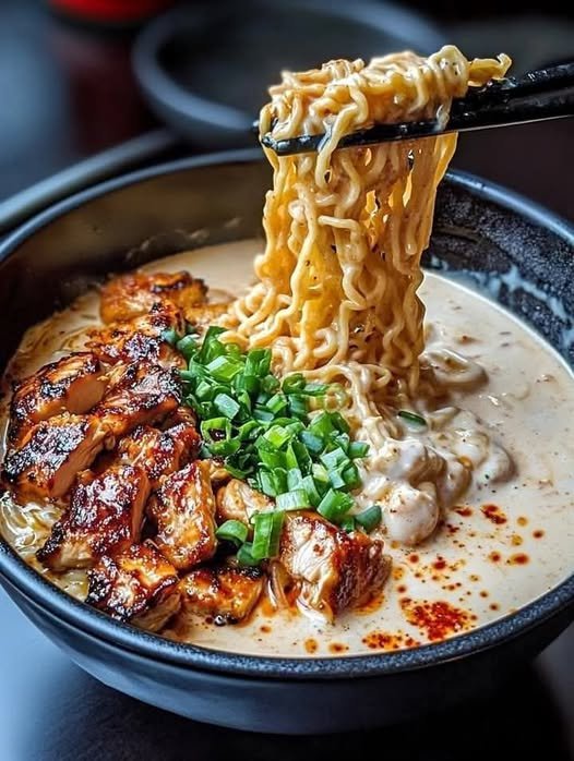 When I’m craving something spicy, creamy, and comforting all in one bowl, this Fiery Chicken Ramen with Creamy Garlic Sauce is exactly what I turn to. It’s rich without being too heavy, has the kind of slow-building heat that keeps each bite exciting, and the broth—oh, the broth—is silky, garlicky magic. It’s ramen, but with a bold twist that makes it feel like way more than a quick noodle fix.