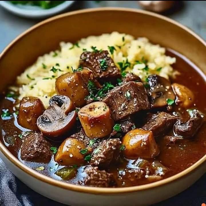 (Ragoût Rustique de Boeuf Français et Champignons)
