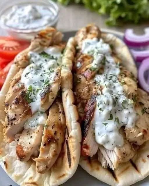 Now the fun part. I warm up the pita or flatbreads, spread on a generous spoonful of tzatziki, top with sliced chicken and a scoop of salad, then roll or fold. It’s messy, but that’s part of the experience. I always serve these with extra napkins and maybe a side of fries or olives if I’m feeling fancy.