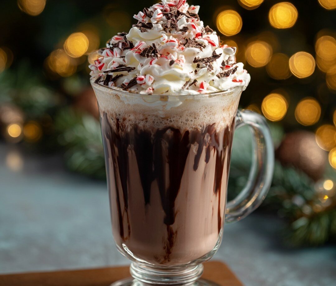 Step 4: Garnish and Serve Top generously with a large swirl of whipped cream. Finish by sprinkling with crushed candy canes or elegant chocolate curls. Serve immediately while it’s still warm and the “frosty” garnish contrasts beautifully with the heat.