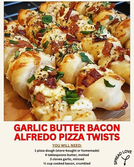 Garlic Butter Bacon Alfredo Pizza Twists: Irresistibly Cheesy, Crispy, and Loaded with Flavor