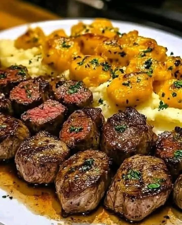 Ribeye Steak Bites and Cheesy Smashed Potatoes combine sizzling steakhouse vibes with cozy kitchen comfort. It’s a dish that’s easy to love and even easier to devour—perfect for anyone craving a rich, satisfying meal with a punch of garlic, cheese, and buttery goodness.