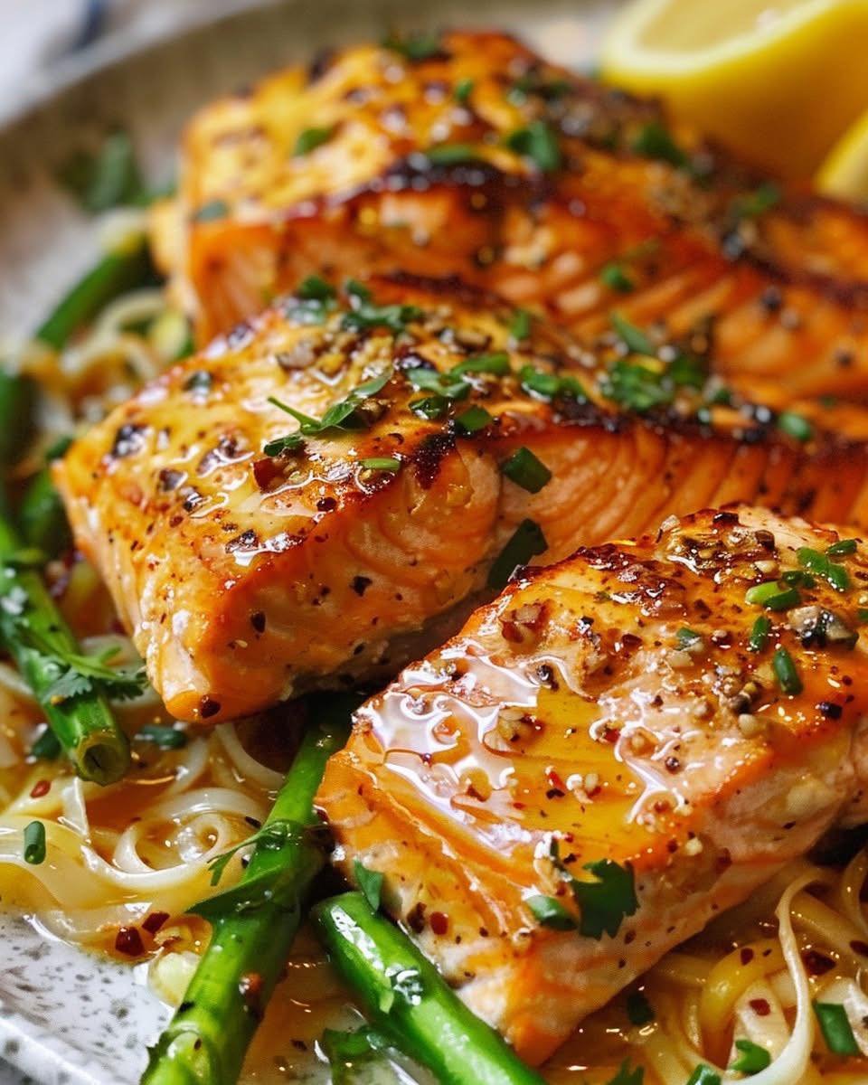 This dish delivers maximum flavor with minimal effort. The seared salmon gets a crispy golden crust while staying juicy inside. The garlic butter sauce—bright with lemon, lightly spicy from red pepper flakes, and balanced with just a touch of honey—is truly irresistible. And it’s easy to pair with everything from rice to roasted veggies.