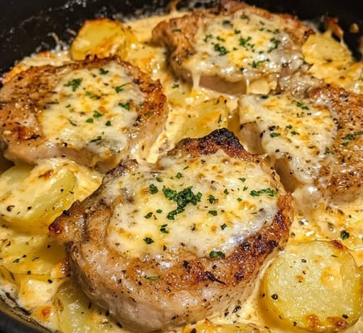 This dish brings together the savory richness of garlic and Parmesan-crusted pork chops with the creamy, cheesy goodness of scalloped potatoes. It’s a complete meal that’s easy to prepare, yet it looks and tastes like something straight out of a restaurant. The blend of flavors and textures will leave everyone asking for seconds!