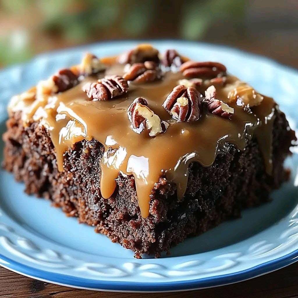 German Chocolate Poke Cake – Caramel-Filled and Coconut-Pecan Topped