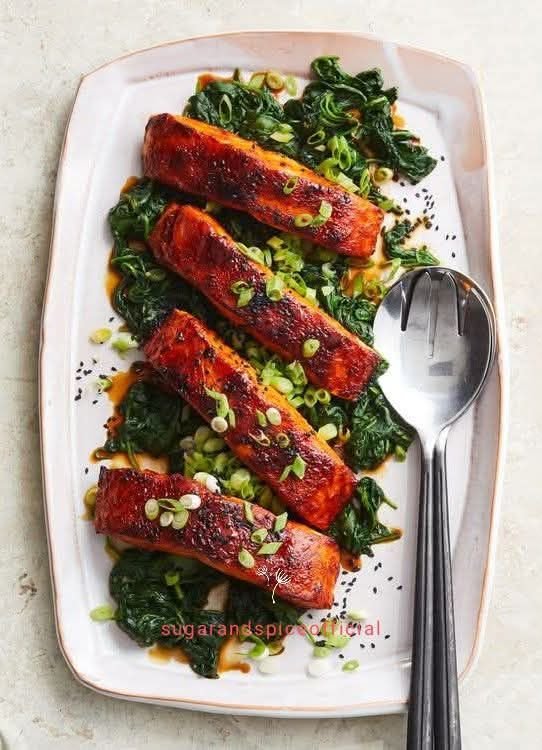 Gochujang-Glazed Salmon with Garlic Spinach: A Sweet, Spicy, and Flavorful Adventure!