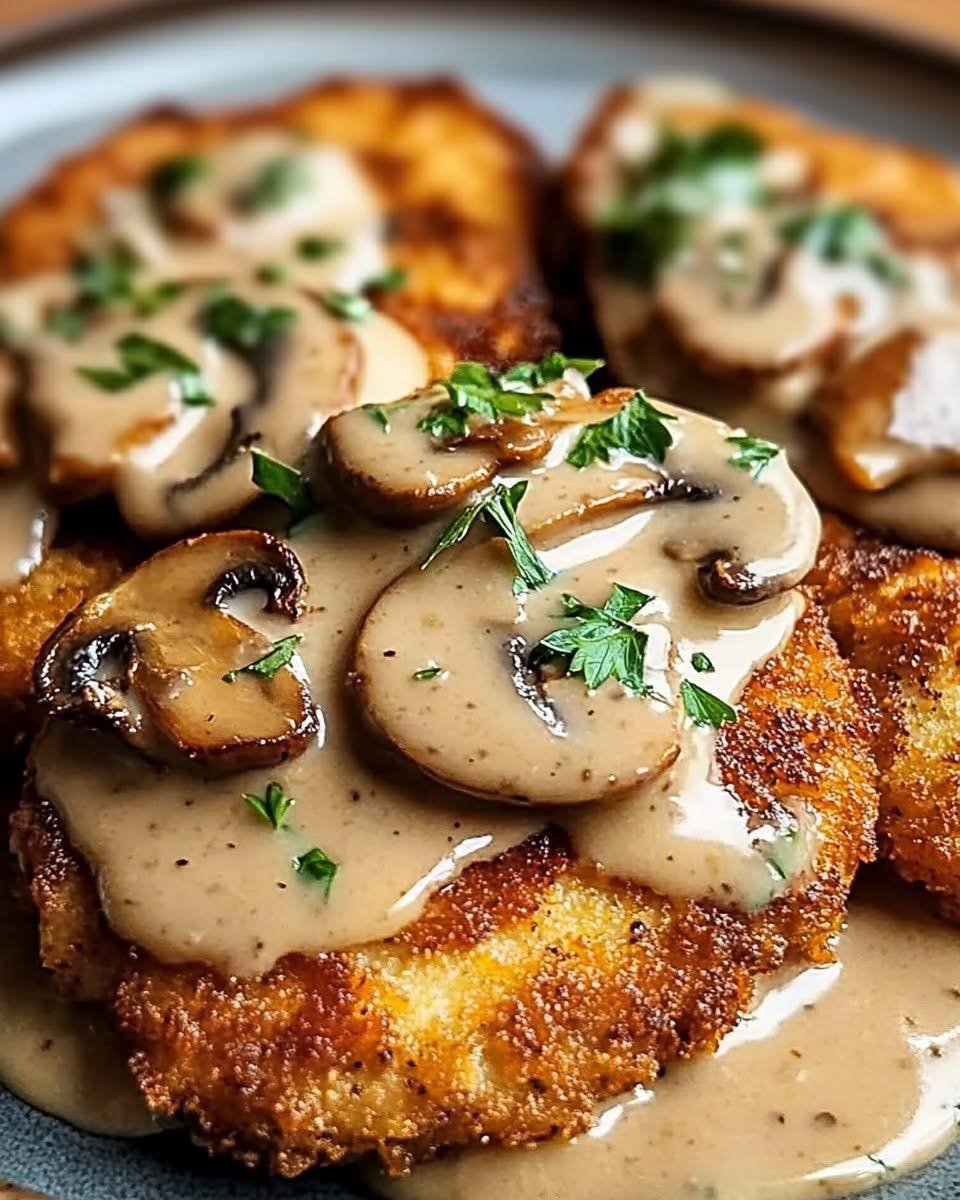 Few things are more satisfying than a plate of golden, crunchy chicken draped in creamy mushroom sauce. This Golden Crispy Chicken with Parmesan Mushroom Sauce is indulgent in the best way—perfectly breaded chicken cutlets pan-fried until crisp, topped with a rich, garlicky cream sauce infused with Parmesan and sautéed mushrooms. It’s a dinner that impresses without the stress.