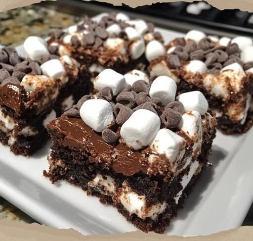 5. Add Marshmallows: Sprinkle the mini marshmallows over the batter layer, followed by the remaining batter. Gently spread it over the marshmallows, being careful not to disturb them too much.