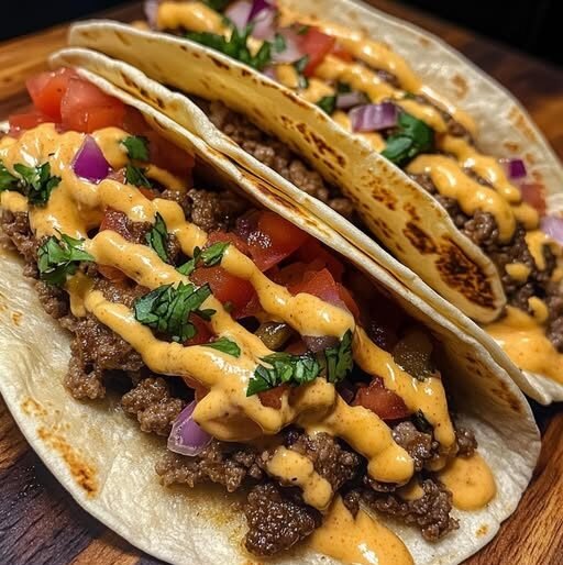 Smashburger Tacos with Spicy Queso Drizzle are the ultimate fusion of burger joint boldness and taco night fun. The rich beef, melty cheese, fresh toppings, and queso drizzle come together in a way that’s satisfying, fast, and full of flavor. It’s the kind of meal you’ll come back to again and again—because who can say no to tacos + burgers + queso?