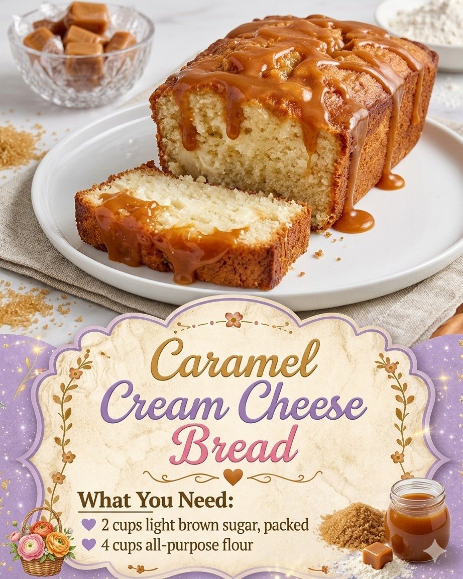 If you’re looking for a loaf that feels like dessert but works just as beautifully for brunch, this Caramel Cream Cheese Bread is exactly what you need. Moist vanilla bread layered with rich cream cheese filling and ribbons of buttery caramel — every slice is soft, sweet, and absolutely irresistible.