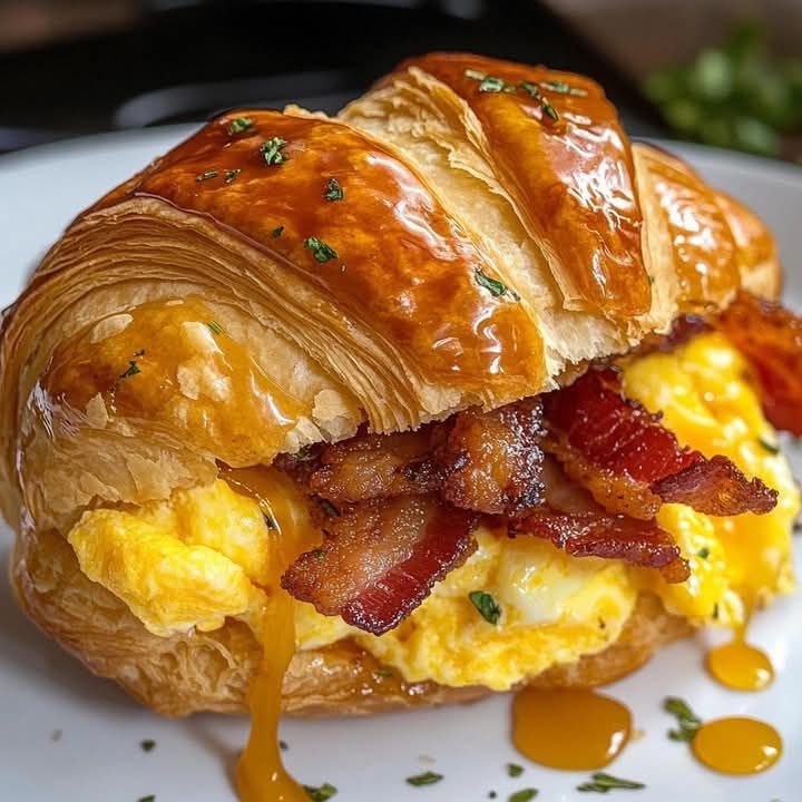 If breakfast sandwiches are your love language, this Honey Butter Bacon & Egg Croissant Sandwich is the kind of recipe that feels almost unfairly good. It takes buttery croissants, fluffy scrambled eggs, crispy thick-cut bacon, melty cheddar, and a warm honey butter drizzle and turns them into a breakfast that tastes rich, comforting, and just a little over the top in the best possible way.