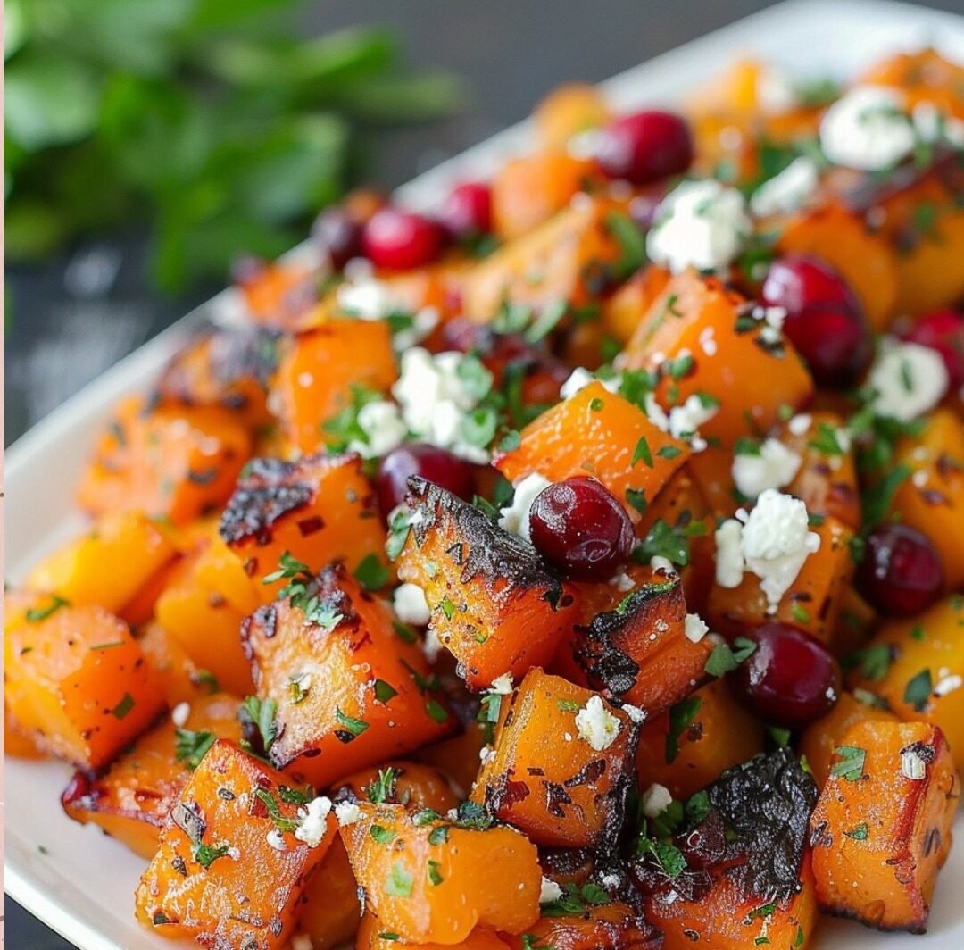 Honey Roasted Butternut Squash with Cranberries and Feta: A Sweet & Savory Showstopper!