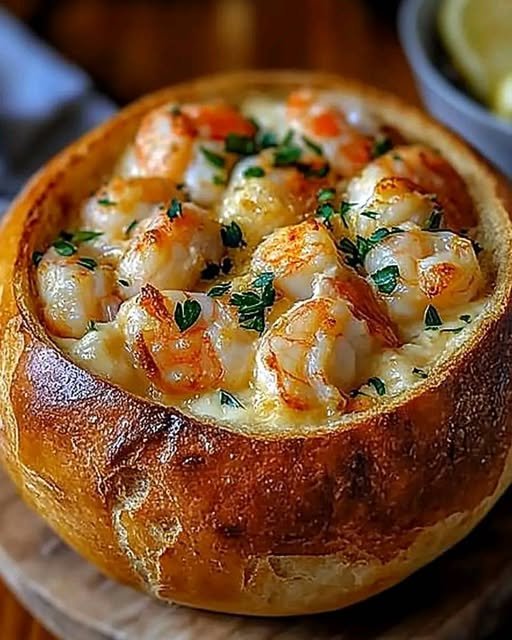 This stuffed seafood bread bowl is pure comfort in appetizer form — creamy, cheesy, savory, and a little indulgent without being fussy. It’s a guaranteed hit whether you’re hosting friends, making a cozy meal for two, or just want something extra special to snack on during movie night.