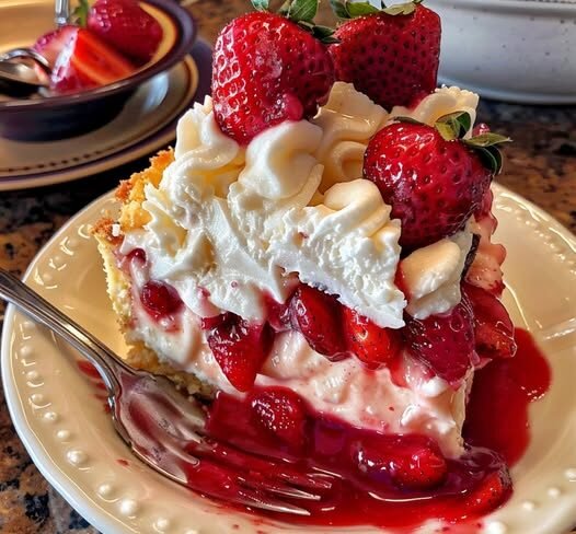 This dump cake combines the best of both worlds: the sweet, juicy flavor of strawberries and the rich, creamy goodness of cheesecake, all topped with a buttery, golden cake crust. And the best part? No mixing, no complicated steps—just layer, bake, and enjoy.