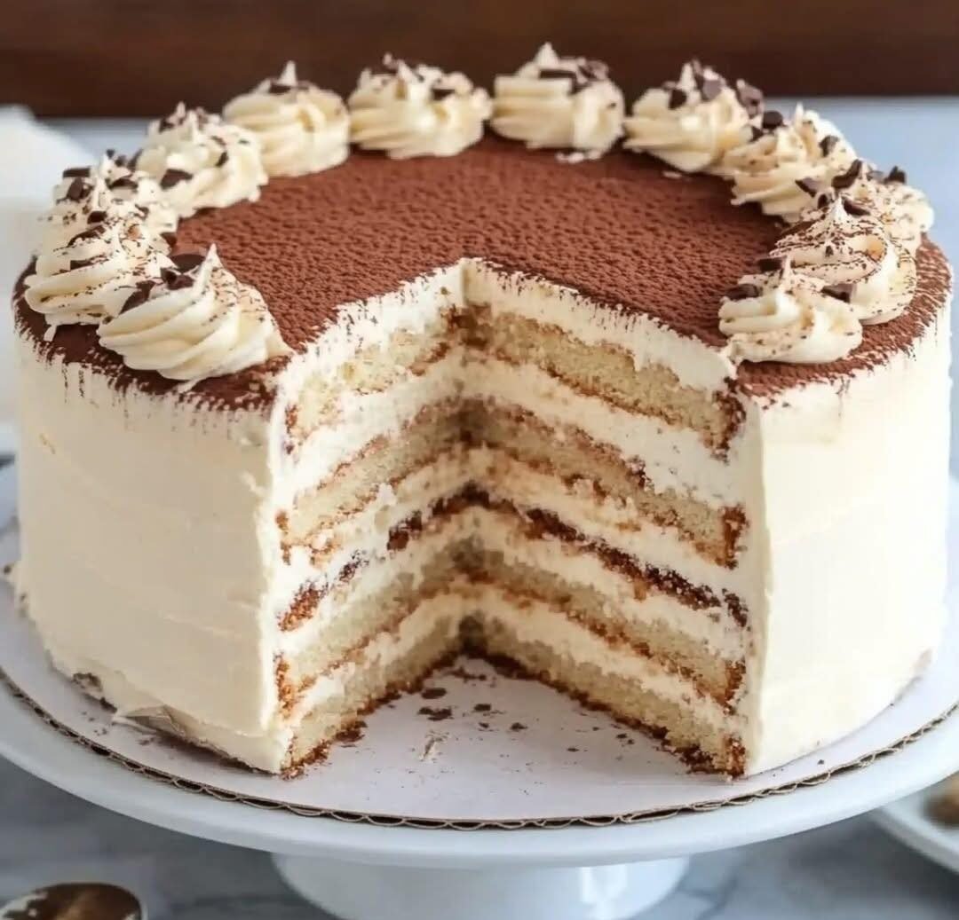 Tiramisu Cake (Elegant Layers of Espresso-Soaked Sponge & Mascarpone Cream)