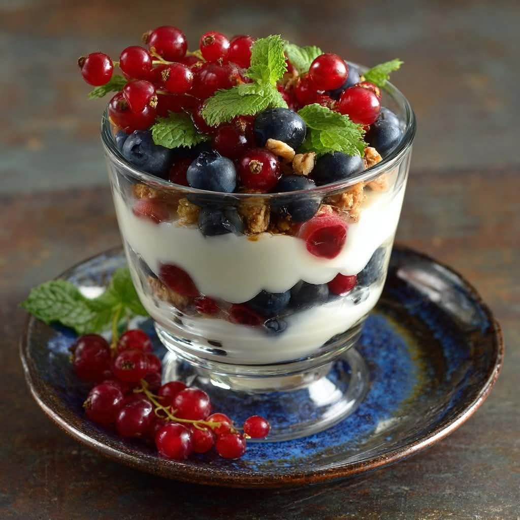 I’m all about meals that are both delicious and beautiful, and this parfait nails it. The simple act of layering the ingredients in a clear glass makes this dish feel special. The tartness of the red currants, the sweetness of the blueberries and strawberries, and the creaminess of the Greek yogurt create a perfect balance of flavors. The subtle sweetness from the honey and a touch of vanilla makes the yogurt sing, and the fresh mint adds a pop of cool, refreshing flavor. It’s a breakfast that truly wakes up your senses and sets a positive tone for the day.
