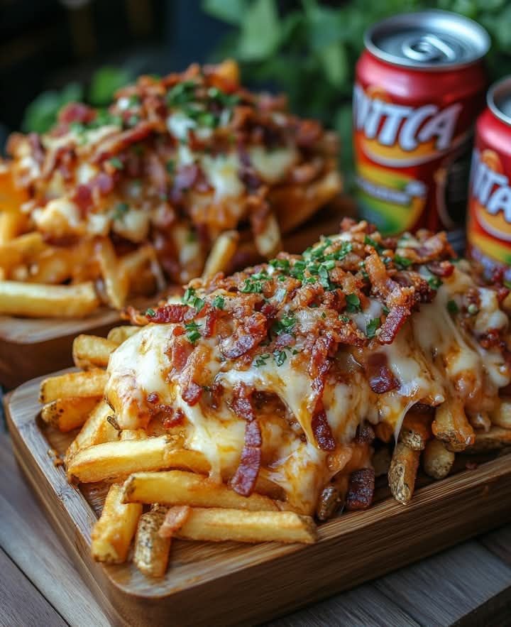 - Garnish & Serve: Top with fresh chopped parsley (if using) for a burst of color and freshness. Add a pinch of saltand pepper if desired. Serve hot and enjoy the perfect mix of crispy fries, melty cheese, crispy bacon, and tangy BBQ sauce!