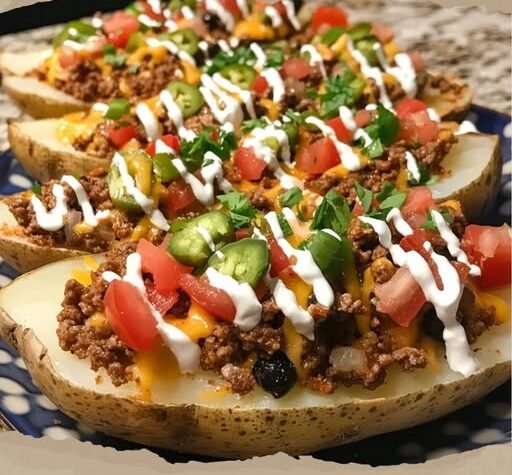 What happens when your two favorite comfort foods—tacos and baked potatoes—collide? You get Loaded Taco Potato Boats with Creamy Jalapeño Drizzle, a spicy, cheesy, flavor-packed mashup that’s as fun to eat as it is to make. This recipe transforms humble baked potatoes into a fully loaded meal, overflowing with taco-seasoned beef, fresh toppings, and a tangy jalapeño-lime crema. Whether you’re cooking for a crowd or just jazzing up your weeknight dinner, these are guaranteed to steal the show.