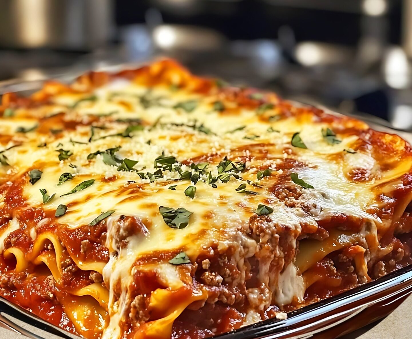- Final Layer: Top with the last 4 noodles, the remaining meat sauce, and the final layer of mozzarella cheese.
