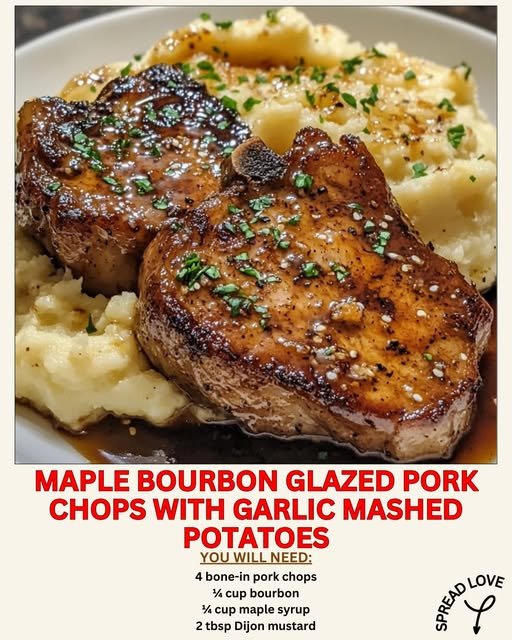 Maple Bourbon Glazed Pork Chops with Garlic Mashed Potatoes – A Sweet and Savory Comfort Meal