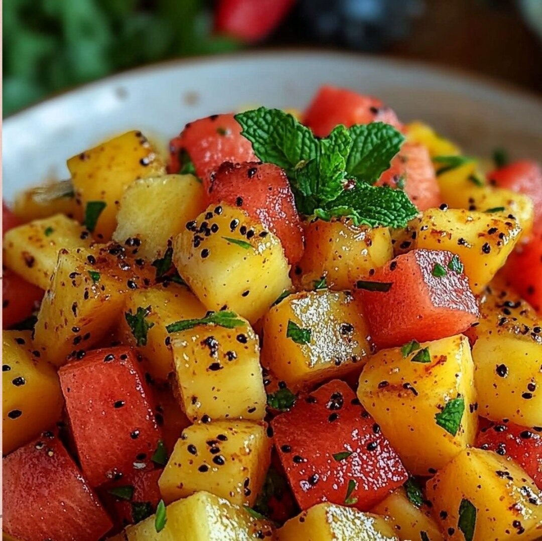 • Prep Ahead (Components): You can cube the pineapple and melons separately and store them in airtight containers in the refrigerator for up to 1-2 days. Chop herbs just before use.