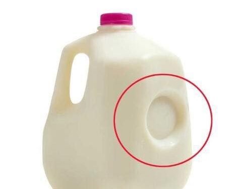 You’ll typically only find this dent on plastic milk jugs, not on cardboard cartons or glass bottles. This is because: