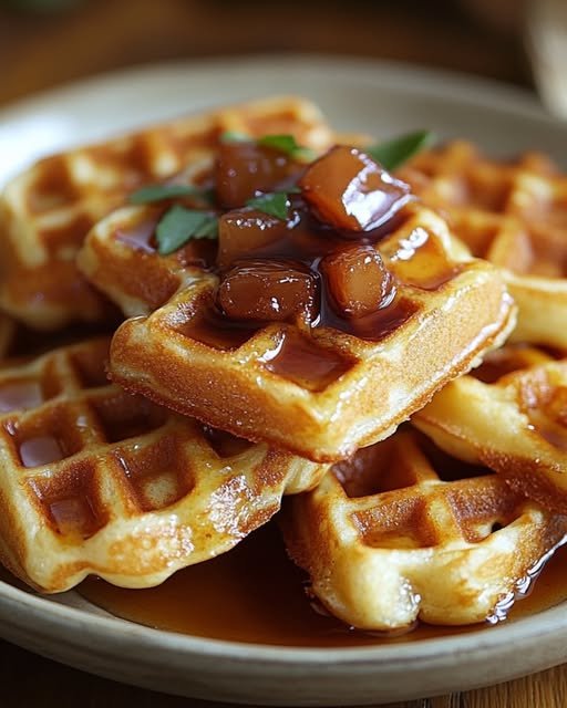 - Pour batter into the waffle iron (about ⅓ cup at a time for minis). Cook for 3–4 minutes or until golden and crispy.
