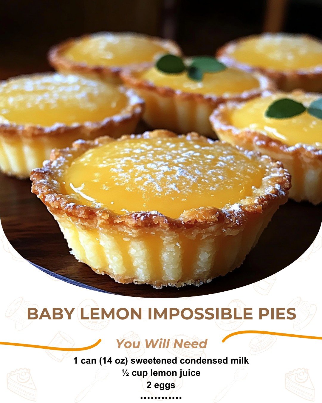 To make these Baby Lemon Impossible Pies, you’ll need the following items from your pantry and fridge: