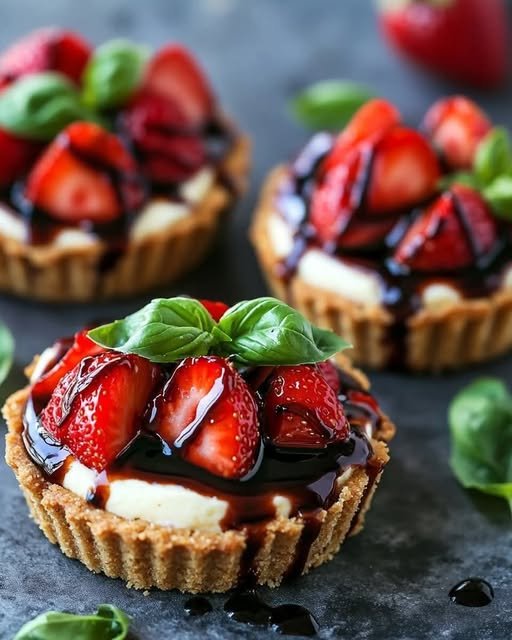 Mini Roasted Strawberry Basil Cheesecake Tarts – A Fresh Twist on Dessert