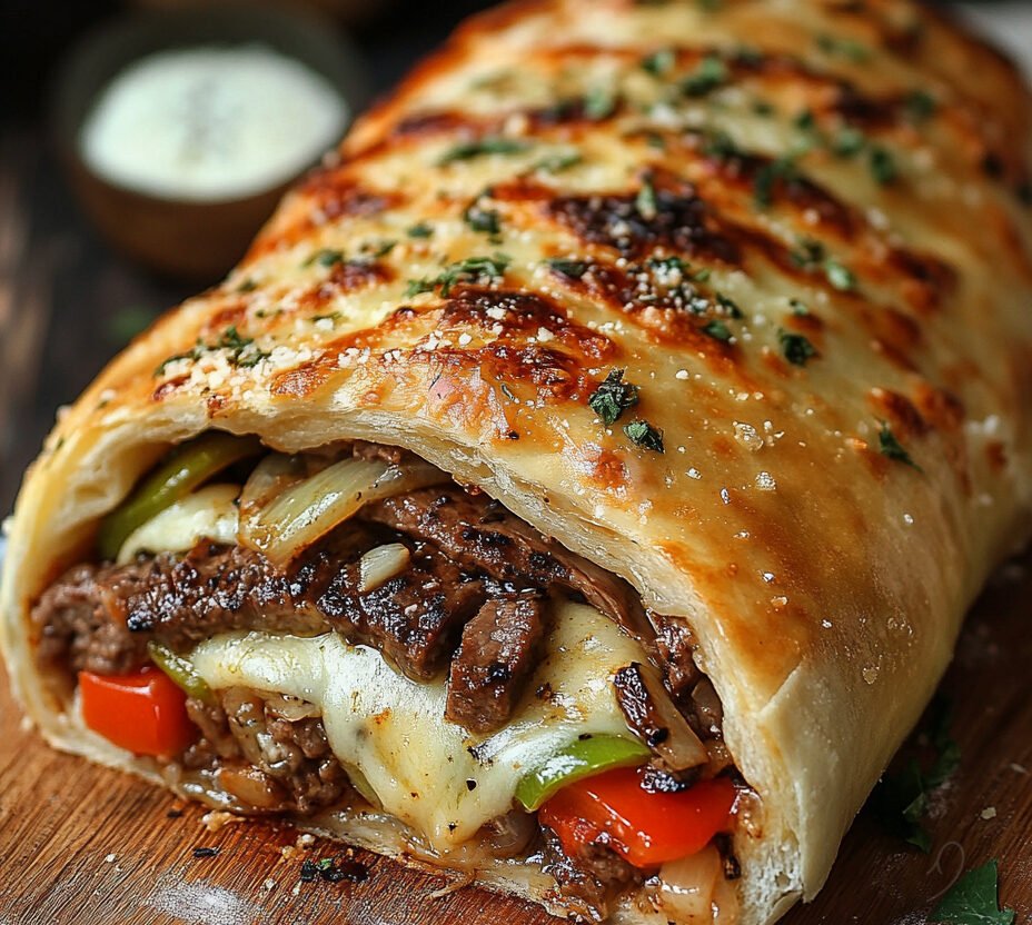 Mozzarella Cheesesteak Stromboli – Stuffed, Cheesy, and Oven-Baked to Perfection