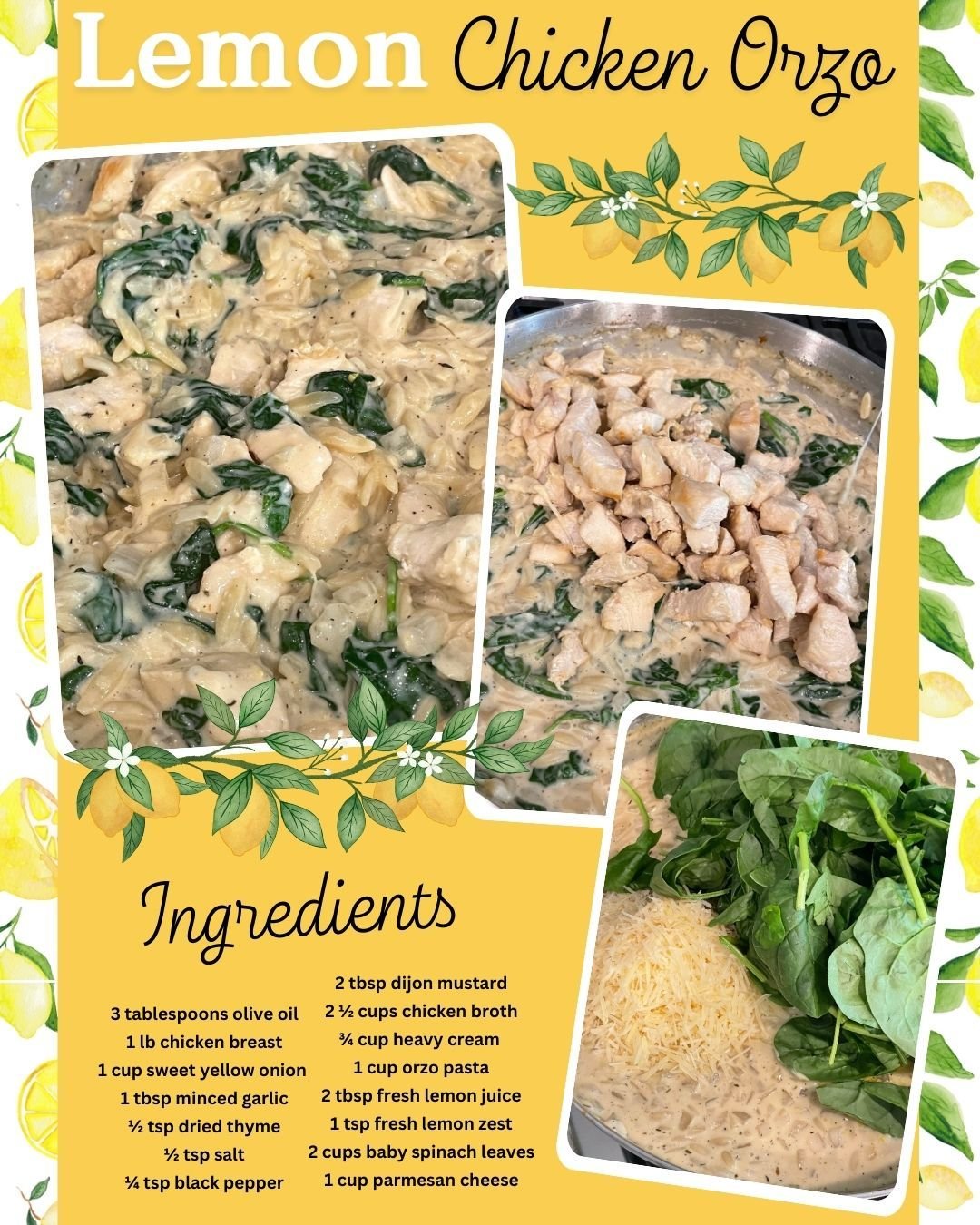 This dish is everything I want in a one-pan meal: quick, easy, flavorful, and comforting. The bright lemon, tender chicken, and creamy orzo come together for a dish that feels both indulgent and light at the same time. Whether you’re cooking for your family or making a special dinner for yourself, this recipe delivers every time.
