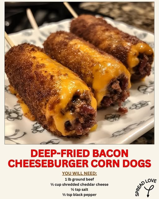There’s something magical about combining a bacon cheeseburger and a corn dog into one golden-fried bite. It’s salty, cheesy, crispy, and just plain fun to eat. Whether you’re making them for a family cookout, game day, or just because you’re craving something outrageous, these deep-fried bacon cheeseburger corn dogs are worth every minute.