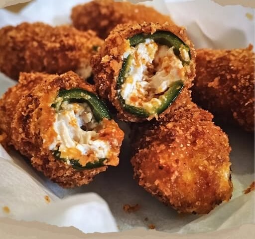 - Freezing tip: Breaded, uncooked stuffed jalapeños freeze beautifully. Fry straight from frozen (add 1–2 minutes cook time), then bake as instructed.