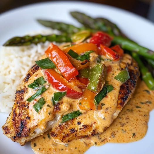 This Spicy Chicken with Bell Peppers, Rice, and Asparagus is the kind of dish that turns a regular dinner into something memorable. It’s creamy, colorful, and comforting—exactly what you need when you want a plate full of bold flavor and fresh textures.