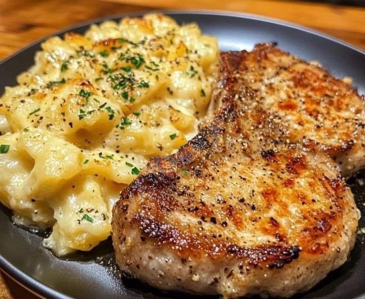 This Garlic Parmesan Pork Chops with Cheesy Scalloped Potatoes is a complete and satisfying meal, perfect for a hearty dinner: