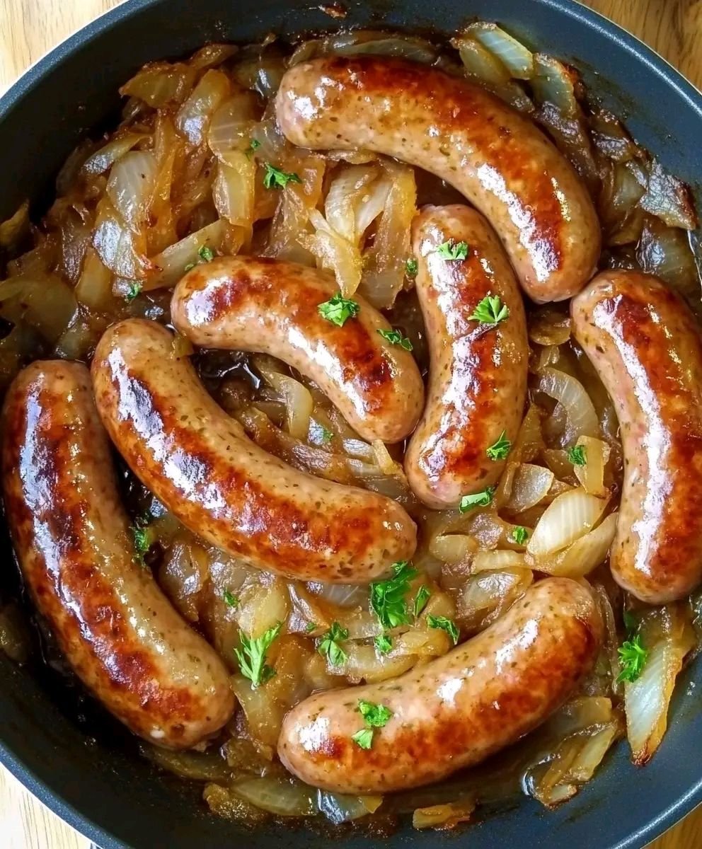 Oven Braised Beer Brats with Caramelized Onions – Hearty and Irresistible