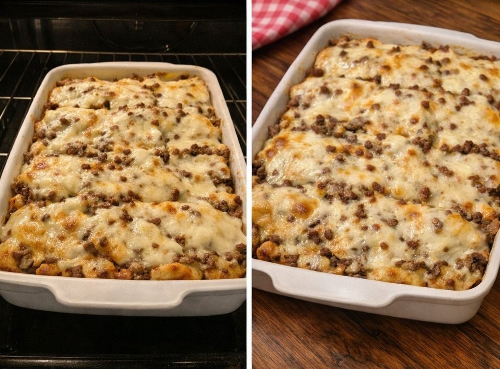 This version is baked in a 9×13 dish, layered like a savory bread pudding, and comes out bubbling, cheesy, and packed with rich beefy flavor. It’s the ultimate crowd-feeder, making it perfect for game days, potlucks, or anytime you need serious comfort food without the fuss.